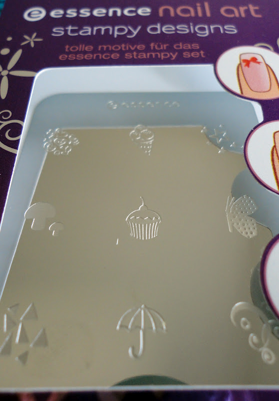 Drei neue essence nail art stampy Schablonen durften auch noch mit. Ich schreib euch jeweils die Motive dazu, weil die auf den Bildern manchmal nicht so richtig zu erkennen sind.